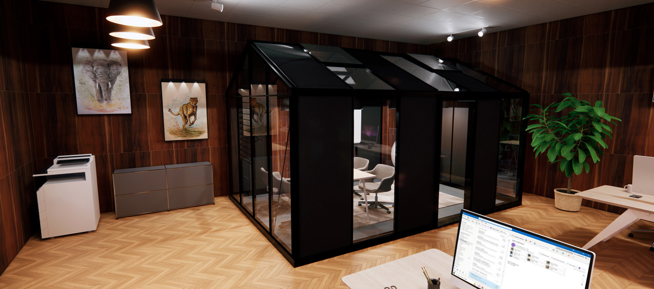 Een akoestische werkplek bij u op kantoor is een mooie toevoeging voor als mensen zich willen terugtrekken om gefocust te werken. U wilt echter ook een mooie oplossing voor een akoestische ruimte wanneer mensen willen vergaderen. Onze kantoorkassen kunnen wij in grote formaten leveren, zowel half akoestisch als volledig akoestisch. Met een maximale grootte van 606 x 1498 cm standaard, kunnen wij zelfs, indien gewenst, in maatwerk nog grotere ruimtes aanbieden. Hierdoor kunnen wij een akoestische vergaderruimte bieden waar veel mensen tegelijk samen kunnen zijn, voor grote overleggen. Bij deze vergaderruimtes kleden wij de ruimte met extra akoestische materialen aan, om het geluid van een grote groep goed te kunnen absorberen. Hierbij kunt u denken aan een akoestische nok, akoestische planten bakken, akoestische schilderijen, etc. Wij werken graag met u samen naar een akoestische werkruimte die bij uw wensen past en u praktisch veel meerwaarde biedt. Door ons akoestisch assortiment kunnen wij veel verschillende invalshoeken nemen om tot een andere uitstraling te komen of meer effectiviteit van de absorberende werking van de akoestische elementen.